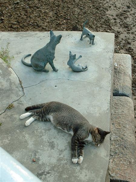 Image: Real Cat with Cat Statue