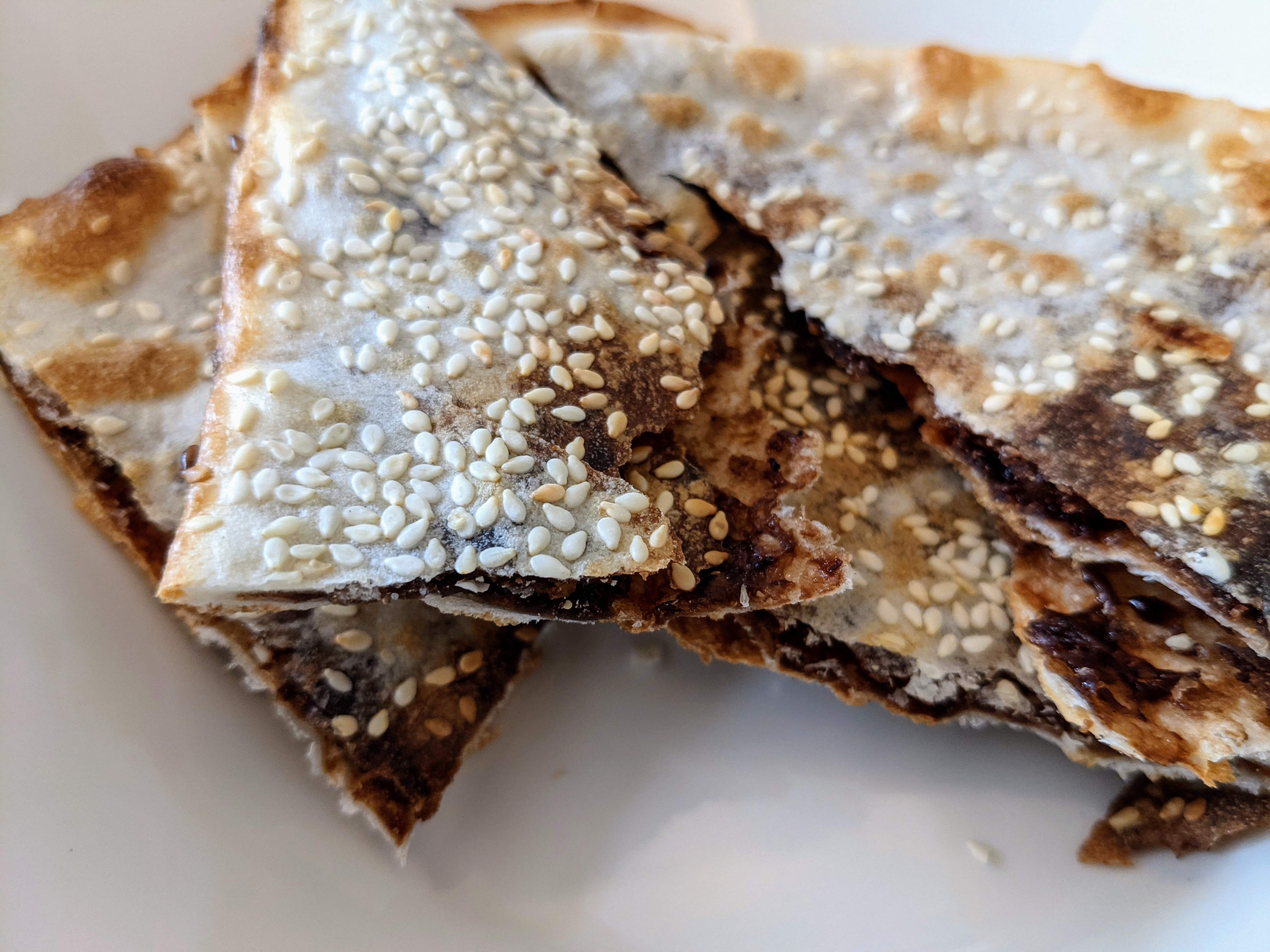 Description: Jingzhou-style guokui flatbread with red bean paste. Made by A Gan Guo Kui, Singapore.