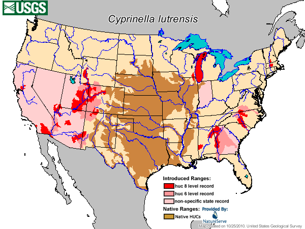 Description: distribution of red shiner (cyprinella lutrensis) in the United States