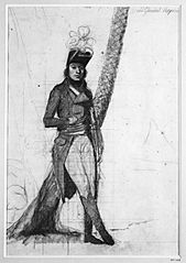 Description: General Jean-Louis-Ebénézer Reynier leaning against a tree, in a portrait drawing by André Dutertre made during the French campaign in Egypt