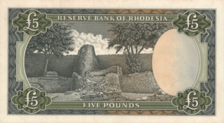 Description: This is an image of the reverse of the paper Rhodesian £5 note, printed in 1966.