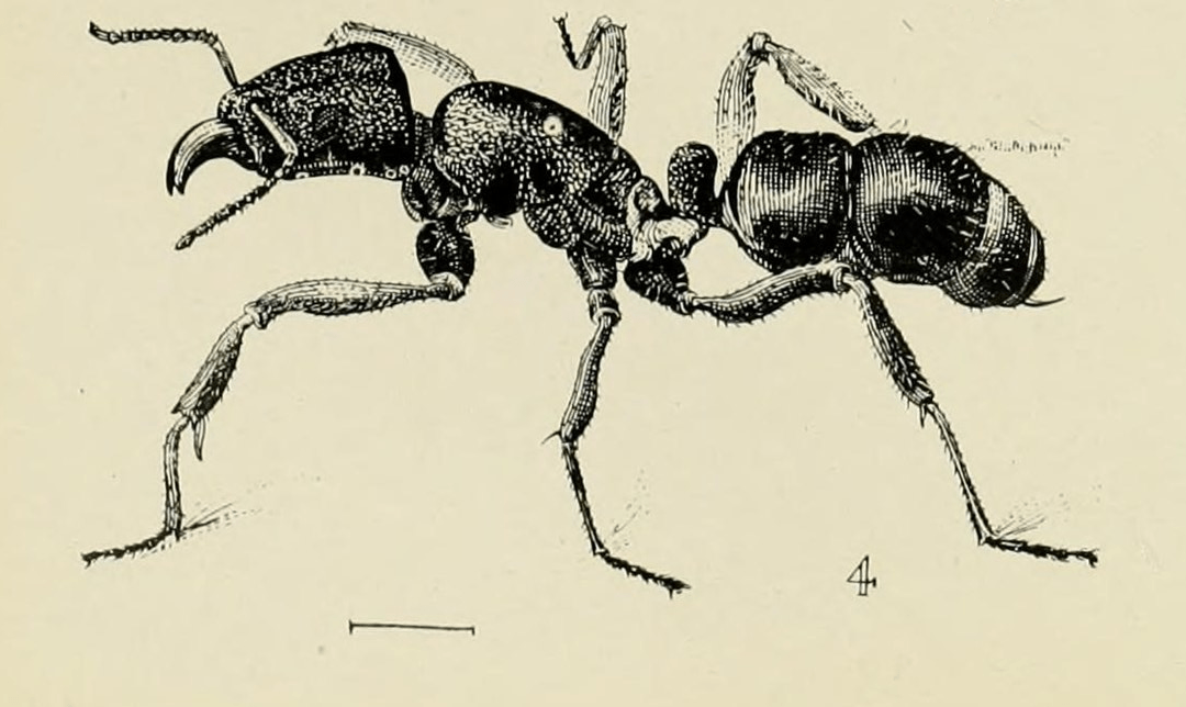 Description: Plate Xll'.—HYMEXOPTERA. In Australian Insects by W.W. Froggatt, published in 1907. Image has been slightly modified to remove external features on other ants. Derives from this image.