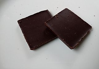 Description: Two pieces of raw dark chocolate (83% pure dark cacao) made by Righteously Raw.