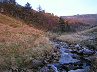 Description: River Kinder by Peter Nook Wood, above Kinder Reservoir