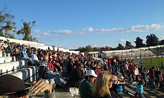 Description: River Plate's supporters at Jardines del Hipódromo stadium.