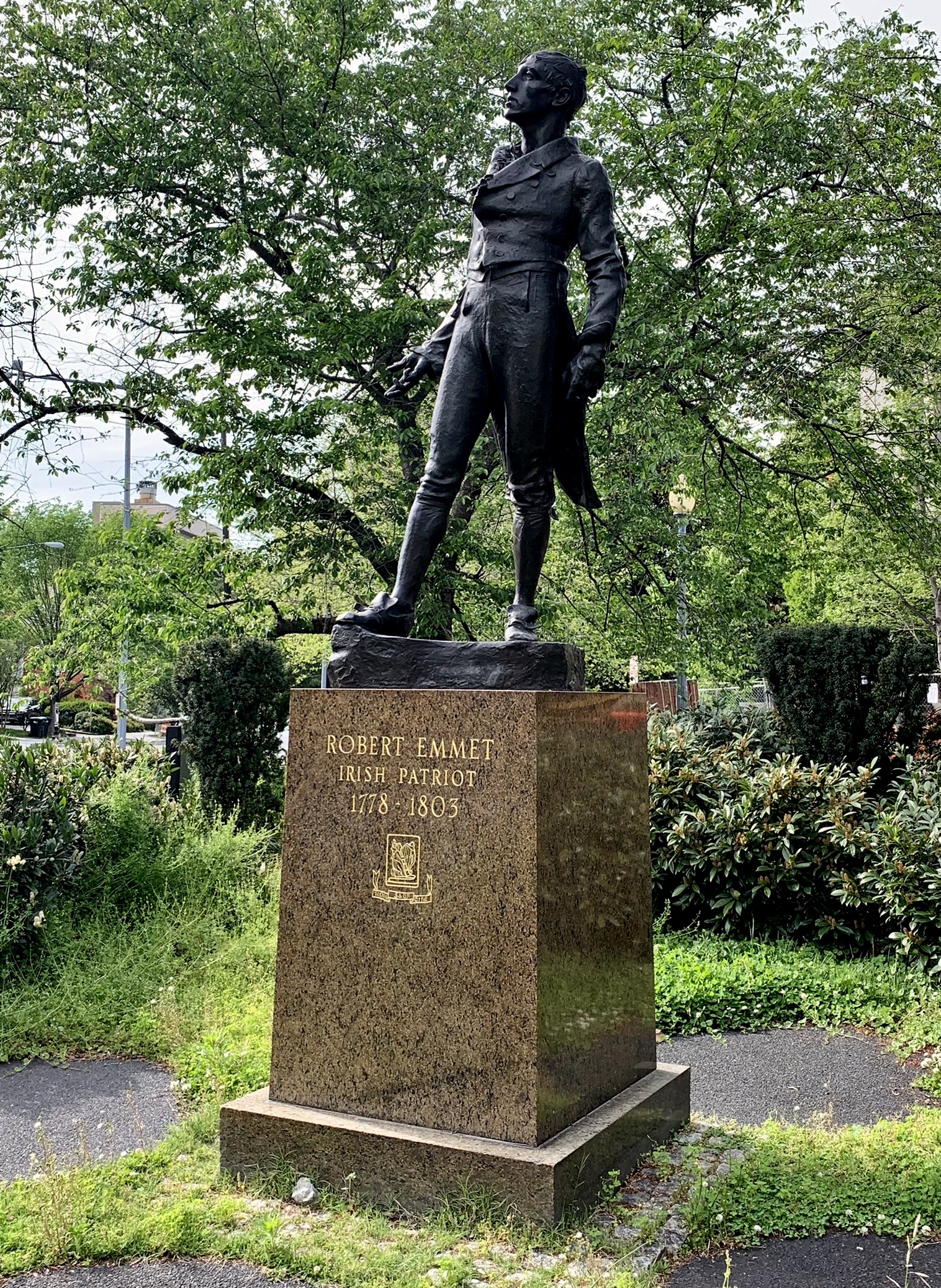 Description: Robert Emmet is a bronze statue by Jerome Connor in honor of Irish Republican Robert Emmet. The statue was cast in 1916. It's located in Robert Emmet Park on Embassy Row in Washington, D.C.