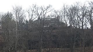 Description: Distant view of the Rockledge estate, located at 4810 Upper River Road in Glenview, Kentucky, United States. Built in 1911, it is listed on the National Register of Historic Places.