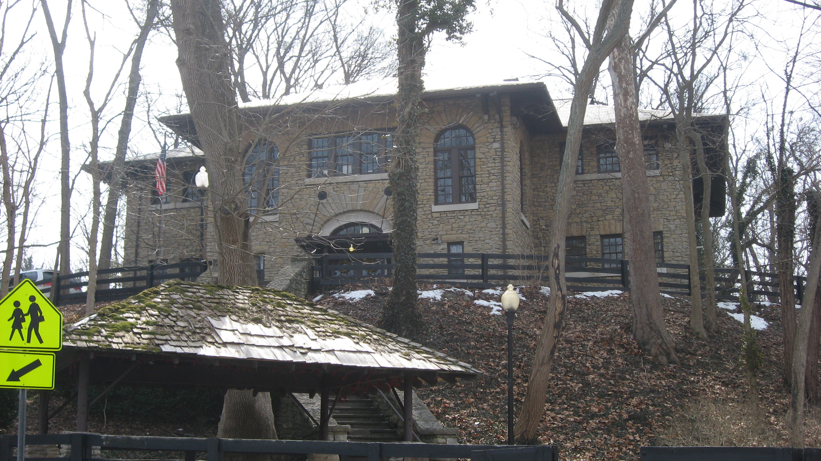 Description: Western front of the Rogers Clark Ballard Memorial School, located at 4200 Lime Kiln Lane in Glenview, Kentucky, United States. Built in 1914, it is listed on the National Register of Historic Places.