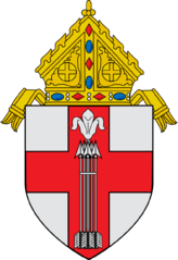 Description: This is a representation of the coat of arms of the Roman Catholic Diocese of Manchester. The following Commons images were used to create this image: File:Roman Catholic Diocese of Erie.svg by Niagara (talk · contribs) (mitre) File:Old French Escutcheon.svg by Masur (talk · contribs) File:Héraldique meuble Flèche.svg by Zigeuner (talk · contribs) File:Stadtwappen der Stadt Halle (Westfalen).svg by Ludger1961 (talk · contribs)