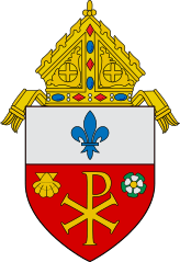 Description: This is a representation of the coat of arms of the Roman Catholic Diocese of Orlando. The following Commons images were used to create this image: File:Roman Catholic Diocese of Erie.svg by Niagara (talk · contribs) (mitre) File:Old French Escutcheon.svg by Masur (talk · contribs) File:Héraldique meuble Fleur de lys lissée.svg by Bruno Vallette (talk · contribs) File:Héraldique meuble Coquille.svg by Bruno Vallette (talk · contribs) File:Escudo de Buñuel.svg by SanchoPanzaXXI (talk · contribs)