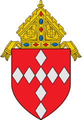 Description: This is a representation of the coat of arms of the Roman Catholic Diocese of Raleigh, North Carolina. Gules eight fusils conjoined in cross throughout 1, 5, 1, 1 Argent. The following Commons images were used to create this image: File:Roman Catholic Diocese of Erie.svg by Niagara (talk · contribs) (mitre) File:Old French Escutcheon.svg by Masur (talk · contribs)
