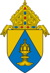 Description: This is a representation of the coat of arms of the Roman Catholic Diocese of Sacramento. The following Commons images were used to create this image: File:Roman Catholic Diocese of Erie.svg by Niagara (talk · contribs) (mitre) File:Old French Escutcheon.svg by Masur (talk · contribs) File:Gemeinde Unsernherrn Wappen.svg by Demidow (talk · contribs)