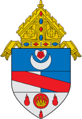 Description: This is a representation of the coat of arms of the Roman Catholic Diocese of Steubenville. Blazon: Tierced per fess 1st Azure above a crescent Argent a heart of the same charged with a rose Gules, 2nd Per pale Argent and Azure overall a bend Gules, 3rd Argent between three lowes of fire 2 and 1 a torteaux charged with a celestial crown ensigned about the band with the letters IHS Or. The following Commons images were used to create this image: File:Roman Catholic Diocese of Erie.svg by Niagara (talk · contribs) (mitre) File:Old French Escutcheon.svg by Masur (talk · contribs) File:Héraldique meuble coeur 1.svg by Glesker (talk · contribs) File:Rose BVA.svg by Bruno Vallette (talk · contribs) File:Blason Boesses.svg by Gretaz (talk · contribs)
