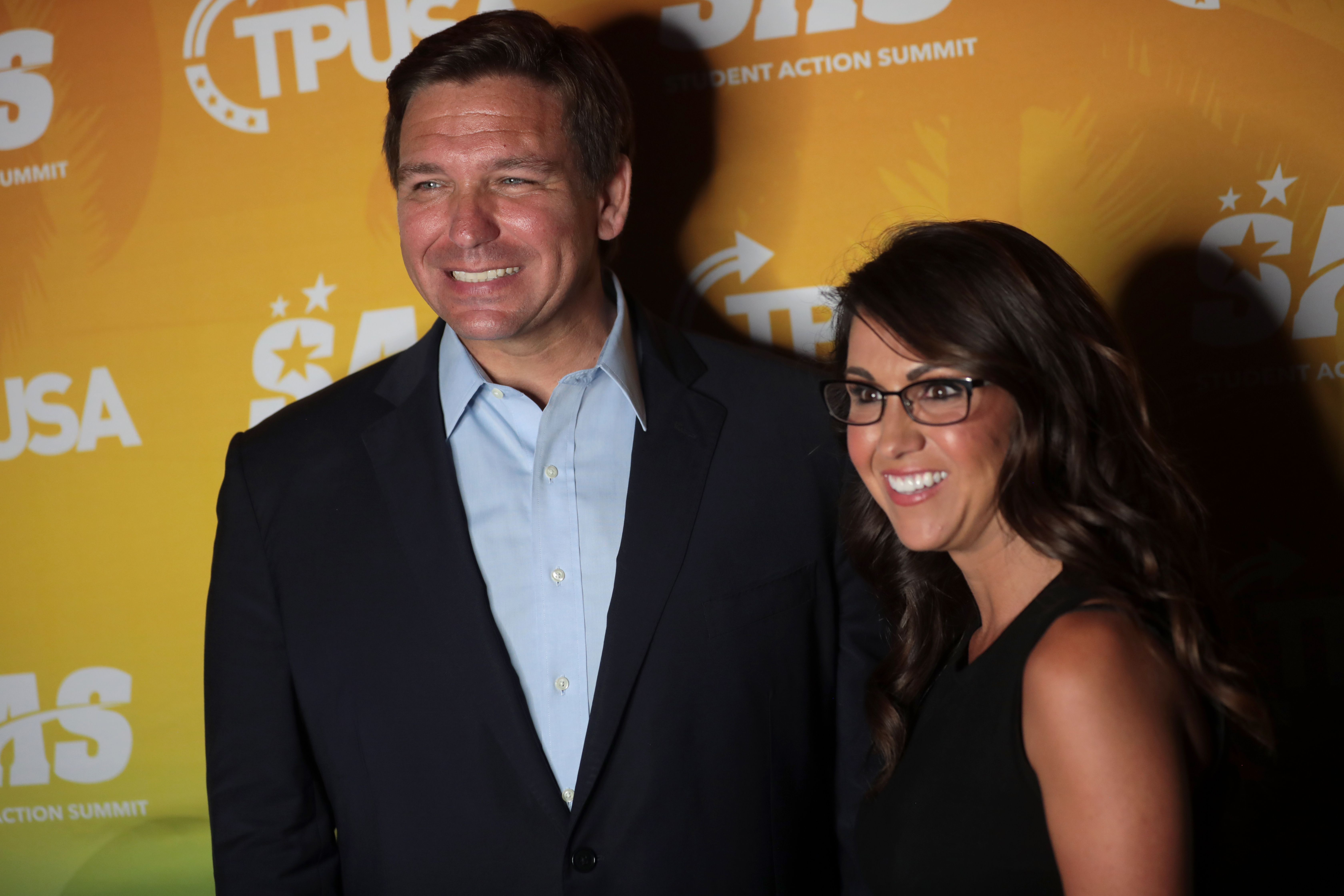 Description: Governor Ron DeSantis and U.S. Congresswoman Lauren Boebert speaking with attendees at the 2021 Student Action Summit hosted by Turning Point USA at the Tampa Convention Center in Tampa, Florida. Please attribute to Gage Skidmore if used elsewhere.