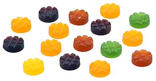 Description: A pile of Rowntree's Fruit Gums candies.