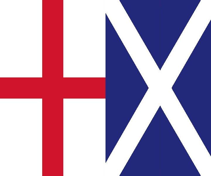 Description: Royal Navy Jack of 1643: The flags of England and Scotland impaled.