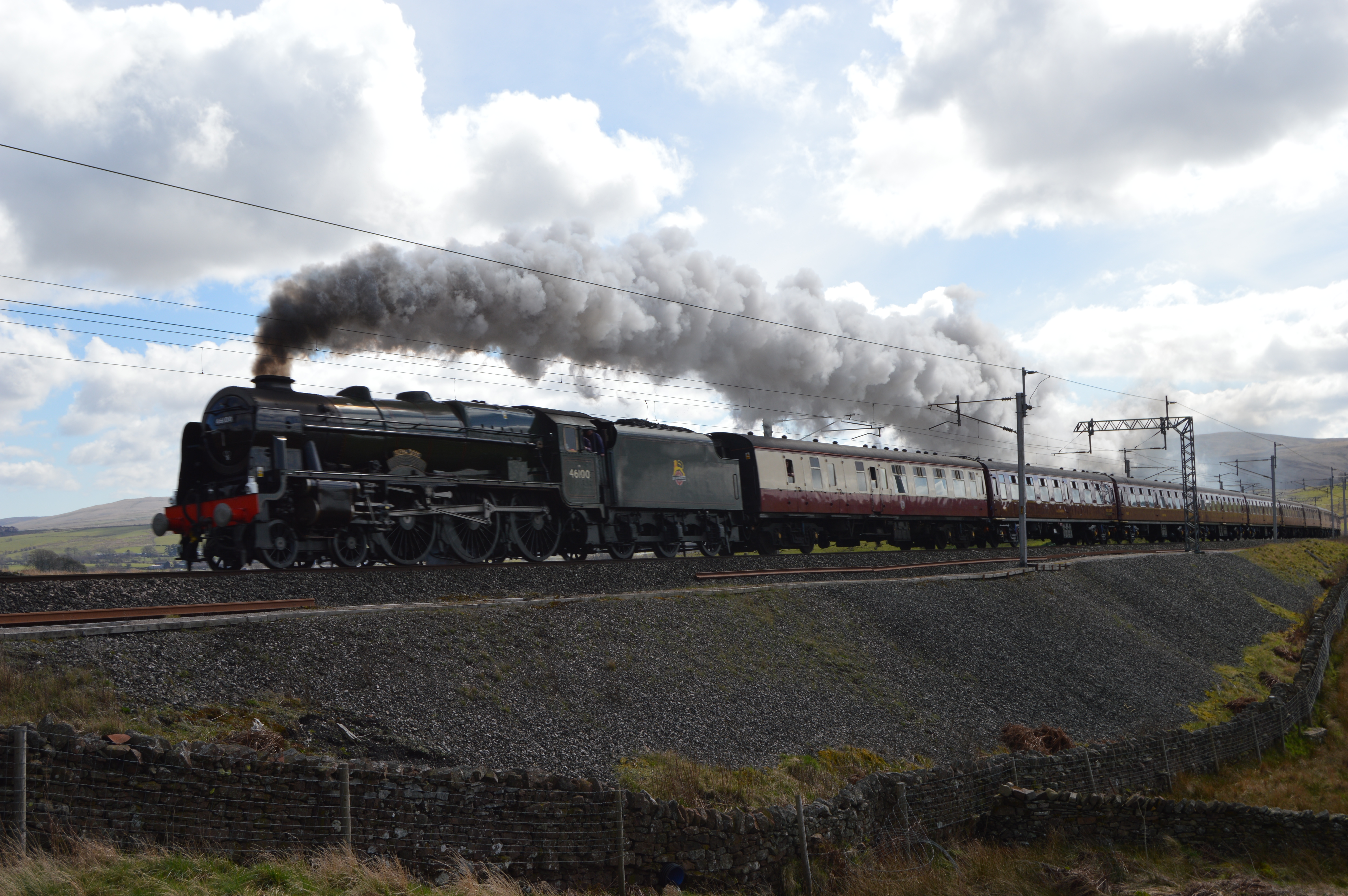 Description: Royal Scot storming up Shap with the outward leg of "The Cumbrian Coast Express", this was to be her first trip up Shap Summit since her withdrawl from BR in 1962.
