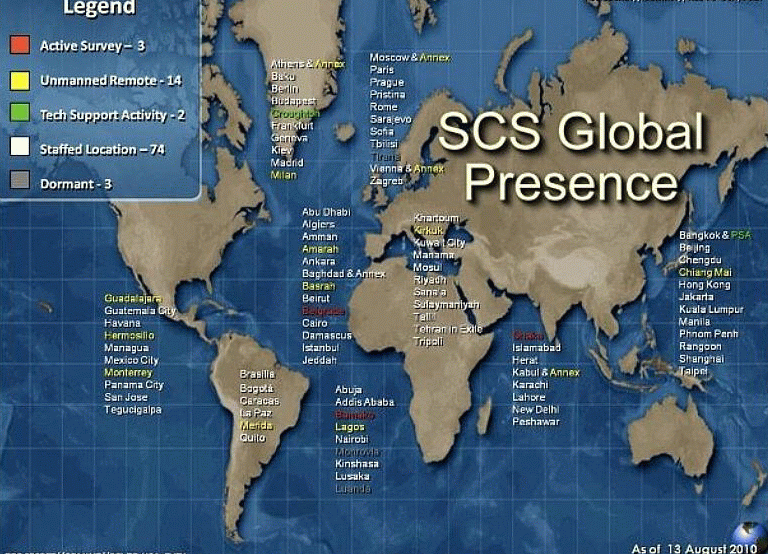 Description: Location and status of CIA/NSA Special Collection Service (SCS) eavesdropping sites as of 13 August 2010