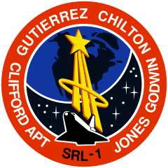 Description: STS-59 crew insignia The STS-59 insignia is dominated by Earth, reflecting the focus of the first Space Radar Laboratory (SRL-1) mission upon our planet's surface and atmosphere. The golden symbol of the astronaut corps emblem sweeps over Earth's surface from the Space Shuttle Endeavour, representing the operation of the SIR-C/Synthetic Aperture Radar (X-SAR) and the Measurement of Air Pollution from Space (MAPS) sensors. The astronaut emblem also signals the importance of the human element in space exploration and in the study of our planet. The star field visible below Earth represents the many talents and skill of the international SRL-1 team.