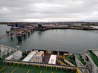 Description: Salt Island, Anglesey, seen from an arriving ship, the MV Ulysses (2000).