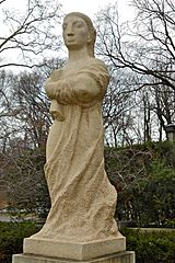 Description: Sculpture of a poet at the Samuel Memorial, Fairmount Park, Philadelphia. Sculptor Jose de Creeft, 1956, Salisbury pink granite sculpture. SIRIS reference IAS 76009459. No visible copyright notice.