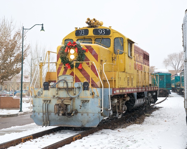 Description: The Santa Fe Southern is a small excursion train that runs from Santa Fe to Lamy, NM. This is one of their locomotives, all decked out in Christmas finery.