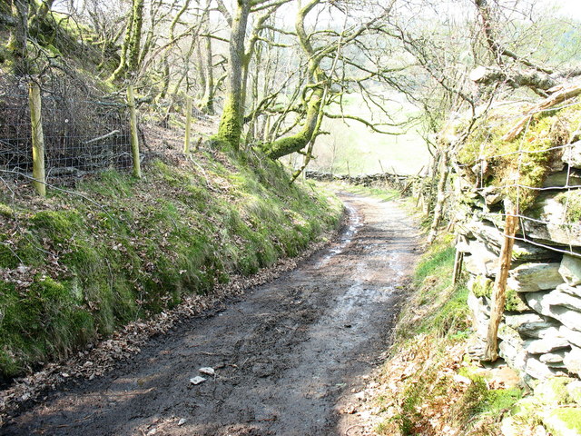 Description: A wet section of Sarn Helen, near to Pont-y-Pant, Conwy, Wales. Even after a fortnight without any rain, this section of the Roman road has surface water which is fed in from springs.