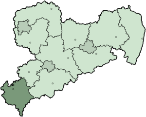 Description: Map of the state Saxony in Germany since 2008, district Vogtlandkreis highlighted.