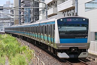 Description: JR京浜東北線のさいたま新都心駅へ進入する、E233系1000番台175編成による大船行き快速列車