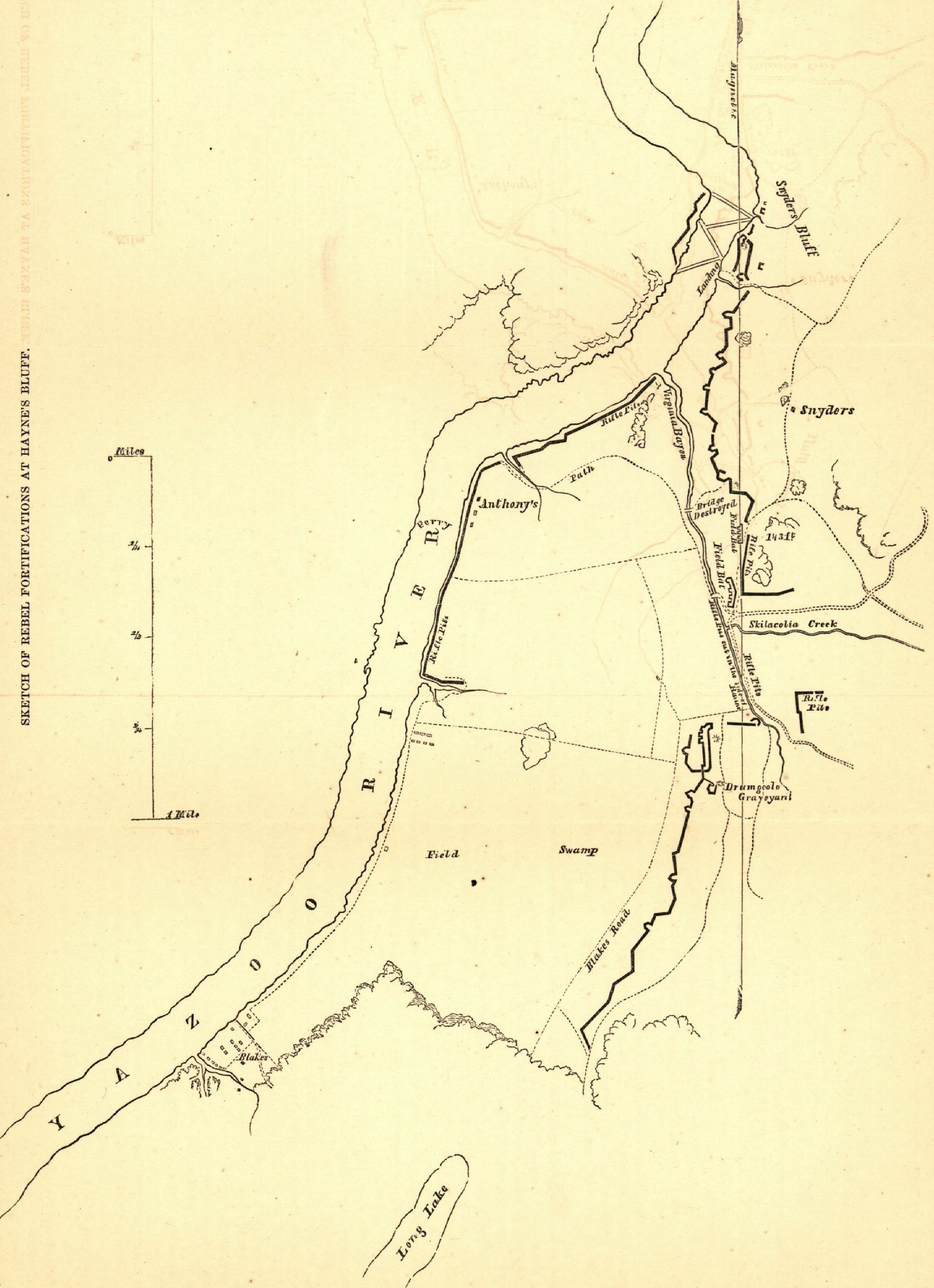 Title: Sketch of rebel fortifications at Hayne's Bluff. LOC 99447416 (cropped)