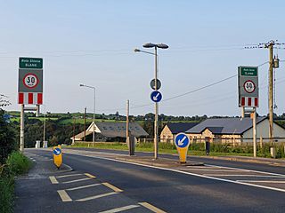 Description: Sign of the entry into the village of Slane in County Meath. A 30 km/h speed limit sign is present.