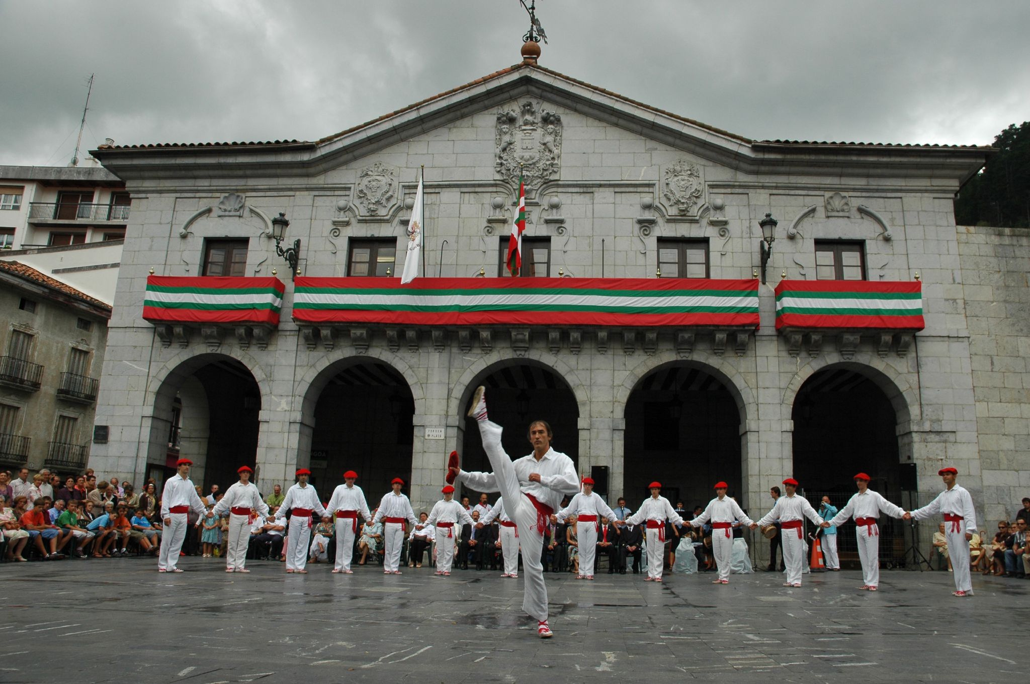 Description: Soka-dantza Elgoibarko udaletxearen aurrean