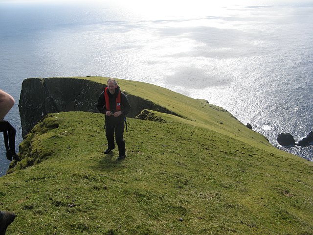 Description: South slopes of Mullach an Eilean View southward from the summit of Mullach an Eilean, Boreray. This side of the island is covered in grass, grazed by Boreray sheep. The difficulties of this approach are concentrated at the bottom - exposure of the landing site to the southwest, and a reputed two metre leap across a chasm.