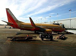 Description: A Southwest Airlines Boeing 737-700 (N741SA) with blended winglets pictured on the tarmac at Midway International Airport, Chicago, Illinois, United States, wearing the airline's desert gold livery.