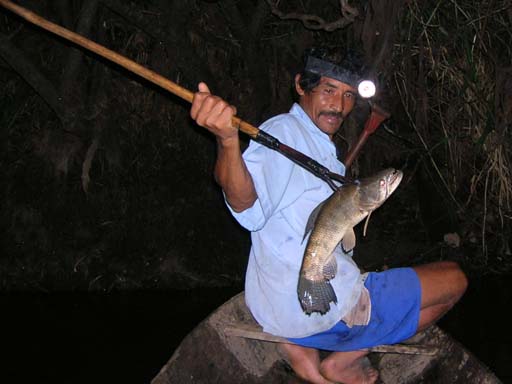 Description: Night spear fishing , Amazon basin ,Peru. taken by:Yuval gelber
