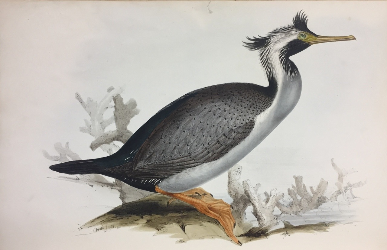 Description: Published by subscription and issued in parts between 1840 and 1848, John Gould’s Birds of Australia is one of the most well known and beautifully illustrated ornithological books ever produced. Within its large, folio-sized pages are descriptions of 681 species of birds accompanied by exquisite coloured lithographs. What is perhaps less well known is that Gould made an earlier attempt at publishing his study of Australian avian species. In 1837-38, Gould published a series of plates illustrating Australasian birds under the title The birds of Australia and the adjacent islands, having been inspired by specimens sent to him in England by his brothers-in-law in New South Wales. Gould, however, decided to proceed himself to Australia to obtain data and the issue of the work was stopped. It is known as Gould’s ‘suppressed plates’, the author having written to subscribers requesting they return their copies. The Alexander Turnbull Library is fortunate to not only hold a complete set of Gould’s Birds of Australia, but the suppressed plates, too, purchased by our founder and namesake Alexander Turnbull (1868-1918). Among the suppressed illustrations are three New Zealand birds: the boisterous kaka, the spotted shag and our national bird the kiwi. John Gould, The birds of Australia and the adjacent islands, London: J. Gould, 1837-1838, Alexander Turnbull Library, fRENG GOULD Birds 1837. – – The birds of Australia, London: published by the author, 1840-1848, Alexander Turnbull Library, fREng GOULD Birds 1848.