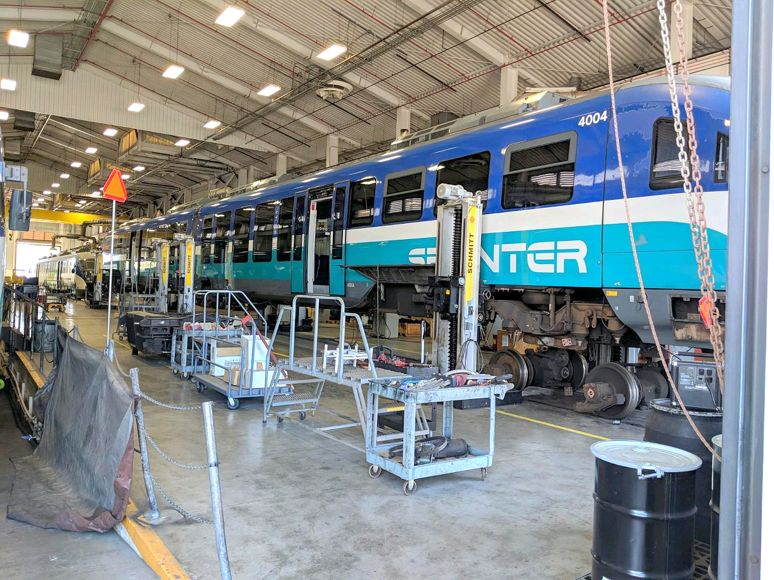 Description: Sprinter vehicle at maintenance shop in Escondido. The SPRINTER is San Diego's north-county light rail system. The east-west service connects Oceanside, with Escondido to the east. The SPRINTER is controlled by the North County Transit District, and operates on a former right-of-way owned by the BNSF. Connection to the north-south COASTER is made at the Oceanside Transit Center.