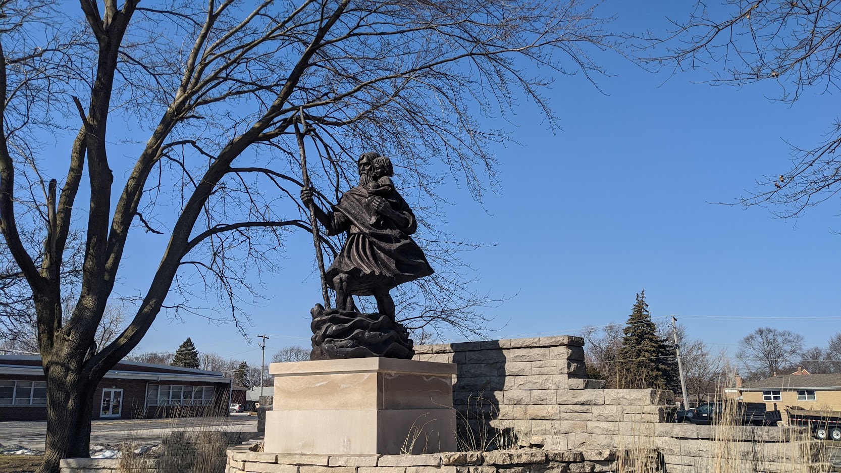 Description: The Saint Christopher statue outside of the St. Christopher Parish in Midlothian, Illinois