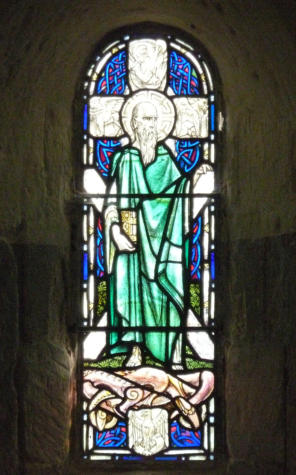 Description: St Margaret's Chapel - St Ninian. St Ninian is a rather obscure saint quite popular with the Scots. According to the Venerable Bede (or an associate) he was a British bishop who preached the gospel among the southern Picts. He died in about 432 and his main centre... more