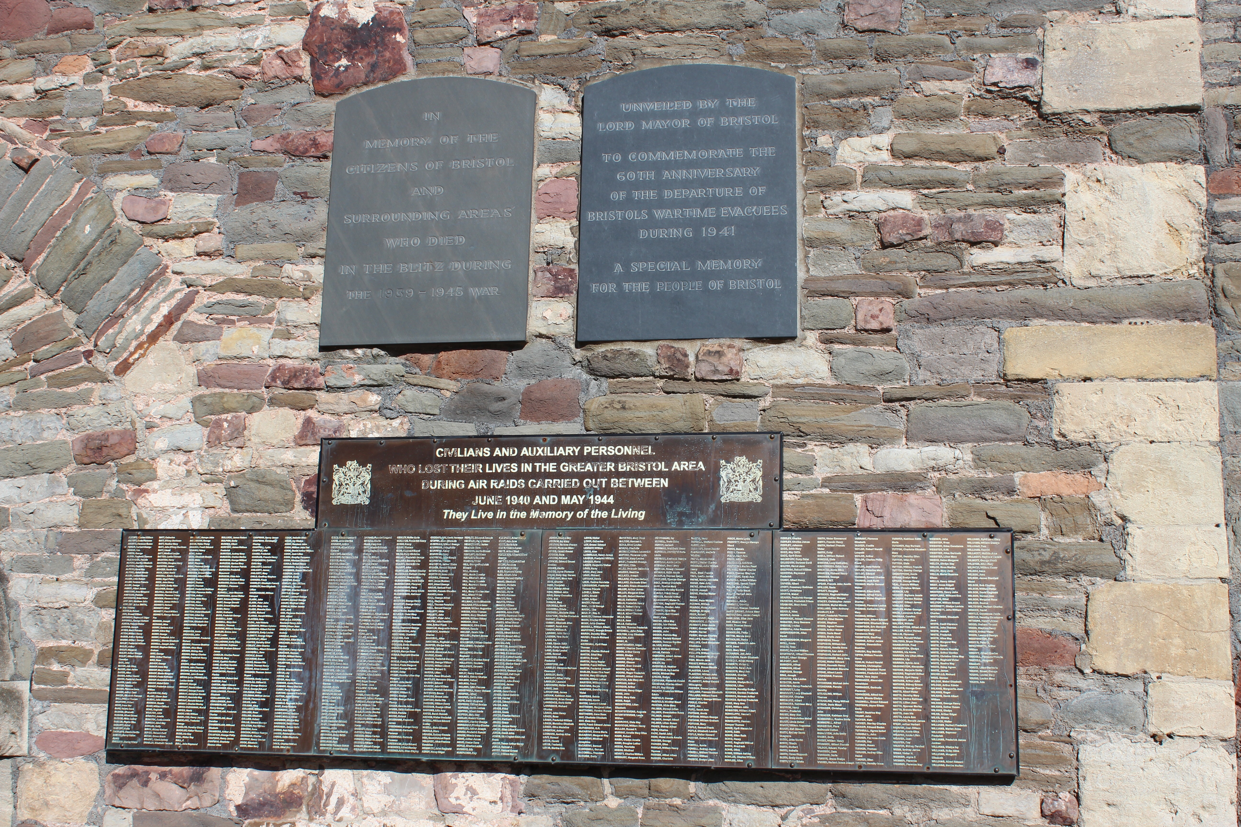 Description: The memorial to the fallen on St Peter's church in Castle Park, Bristol.