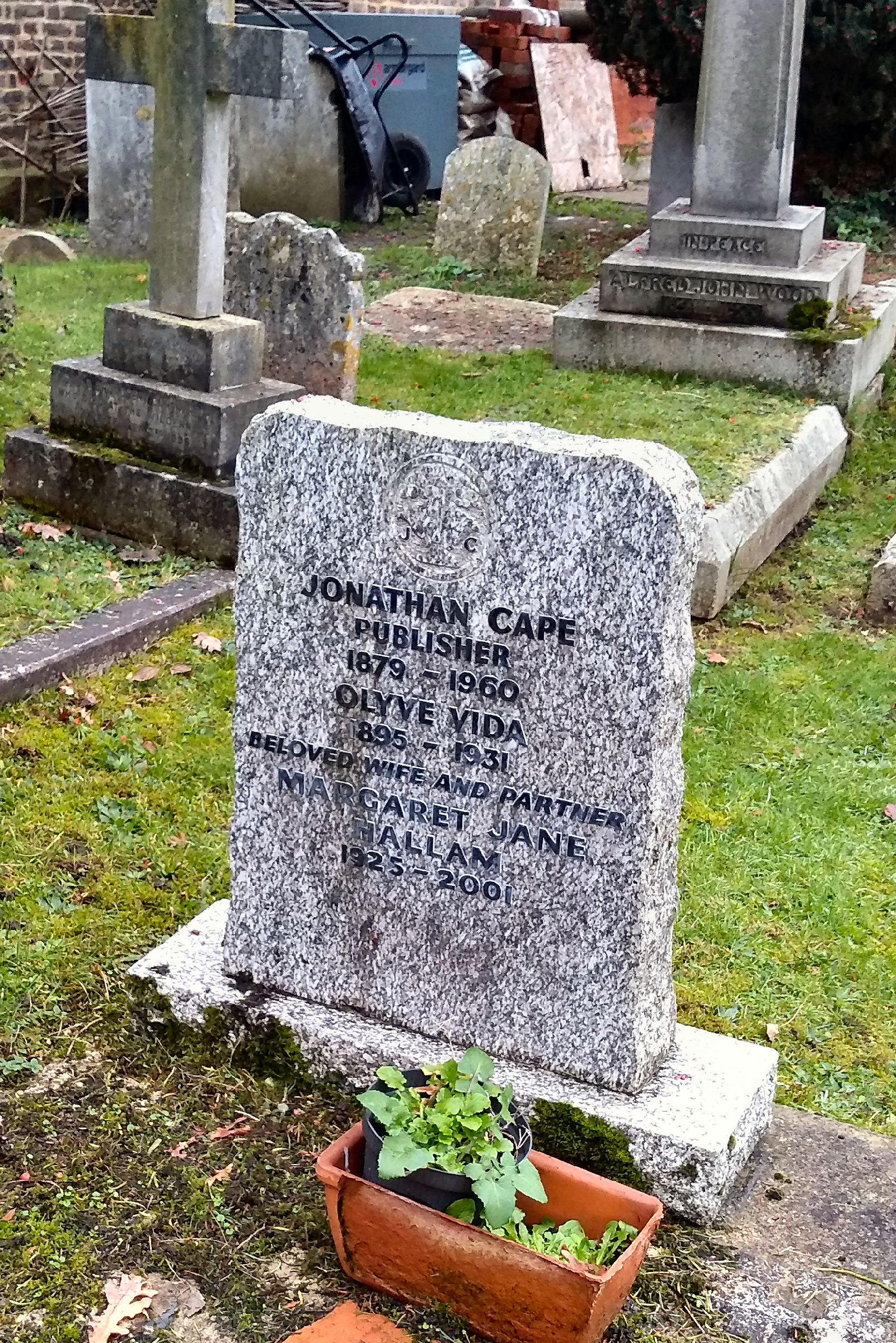 Description: St Peter's Church, Petersham, Jonathan Cape, publisher (1879-1960). Also Olyve Vida (1895-1931) and Margaret Jane Hallam (1925-2001)