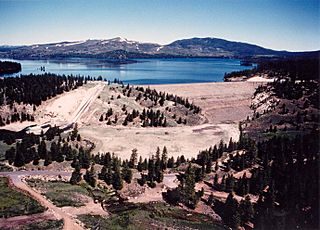 Description: Stampede Dam and Reservoir in eastern California, USA
