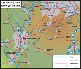 Description: Sketch map of the course of the River Stour, Worcestershire, Staffordshire and West Midlands, England, UK.