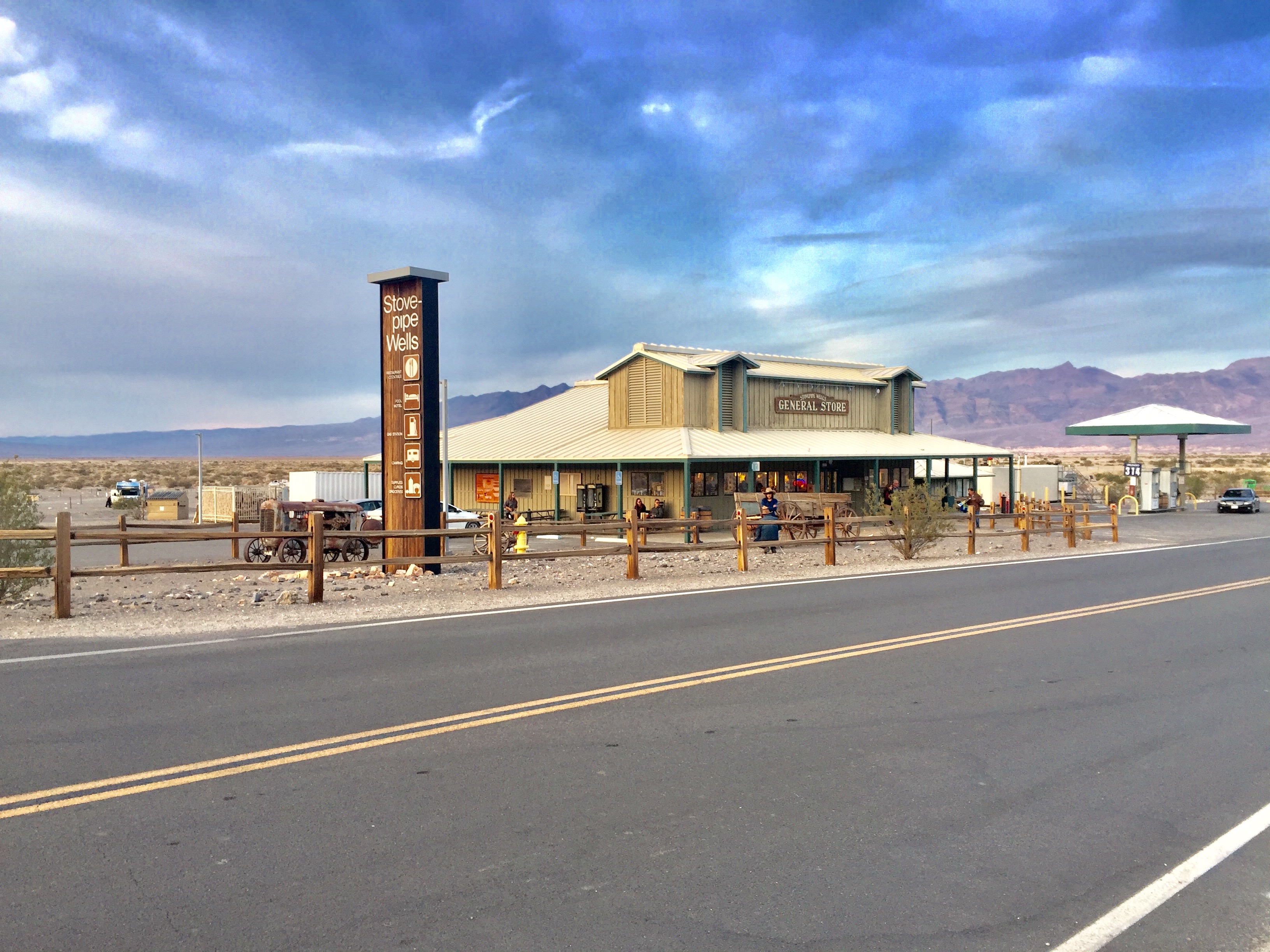 Description: The Stovepipe Wells Village is located several miles north of Furnace Creek, is the smaller of the two major tourist service hubs in Death Valley National Park. Unlike the architecture found at Furnace Creek or at other tourist facilities and historic structures in the park, the structures at Stovepipe Wells are more rustic in style, and made of wood, quite distinct from the Spanish Revival style displayed by most of the other structures. The settlement’s origin can be traced to 1906, when temporary tents were constructed to serve as a way-station for tourists and travelers between the city of Rhyolite, Nevada and Skidoo, California, two ghost towns, and former mining boom towns, located in or near Death Valley. The current structures were constructed starting in 1925, and use local stone in their construction, with motifs and decorative elements being present in the retaining wall in front of the building. Today, the original structures from the 1920s remain, with many newer structures, including a general store, gas station, and additional lodging being located in close proximity to the structure.
