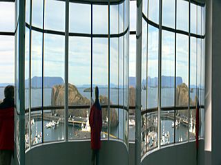 Description: Stykkishólmur, Roni Horn's Vatnasafn - Library of Water - Wassermuseum. Dort wird in Glassäulen Wasser aus allen Gletschern Islands gezeigt.