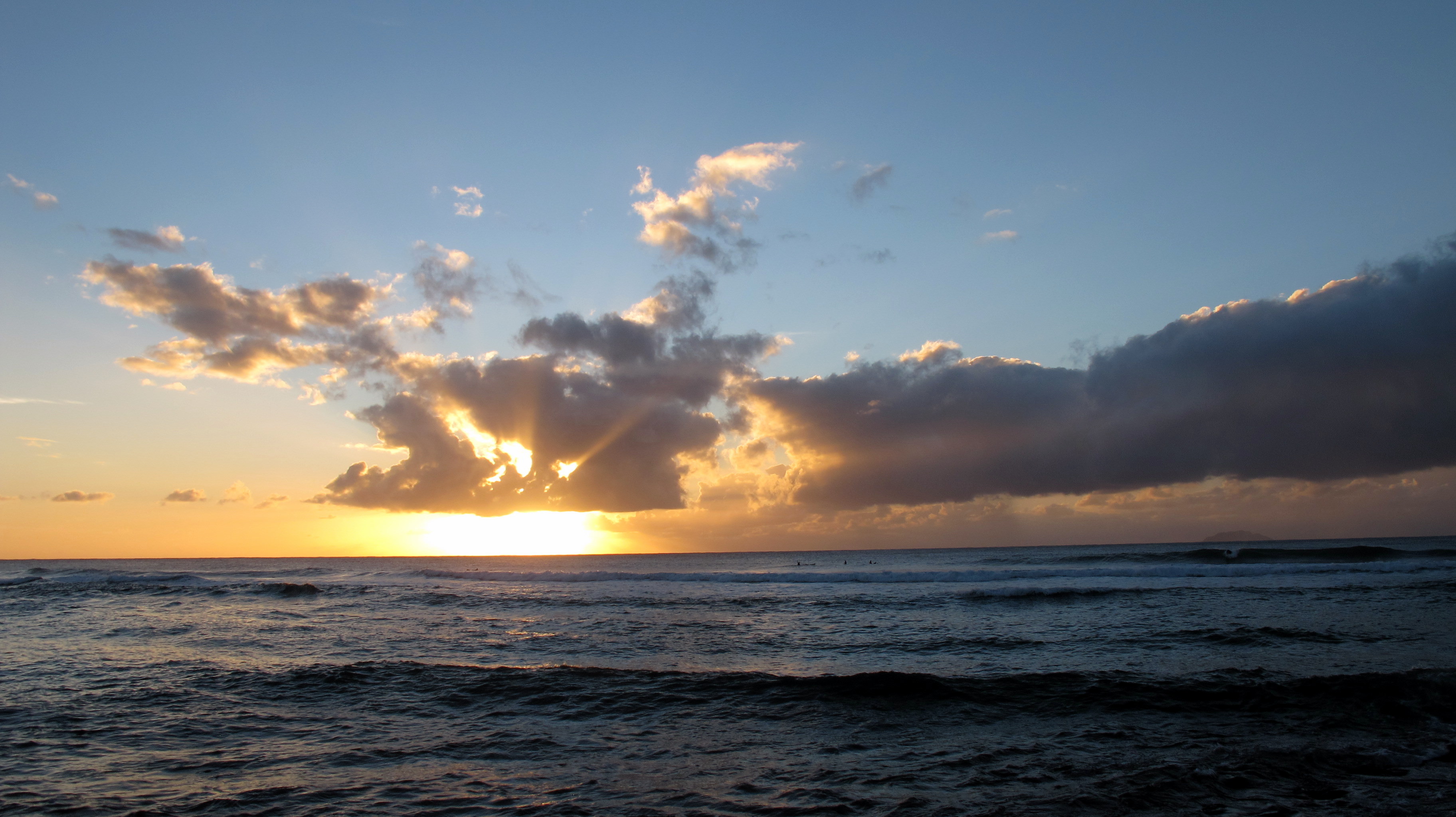 Description: Sunset with surfers, at Maria's Beach in Rincón, Puerto Rico