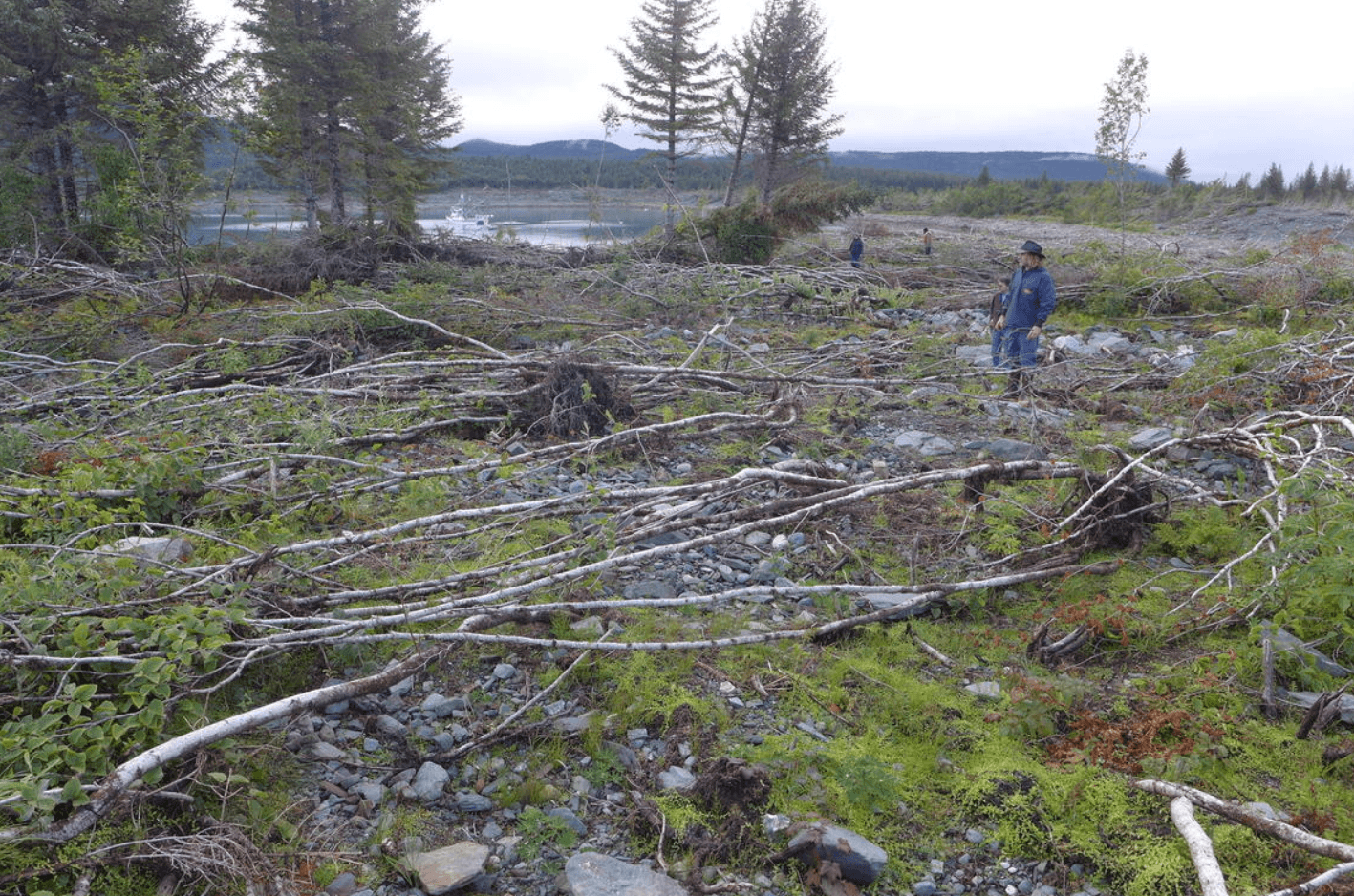Image: Survey of megatsunami runup damage Taan Fiord 9 August 2016