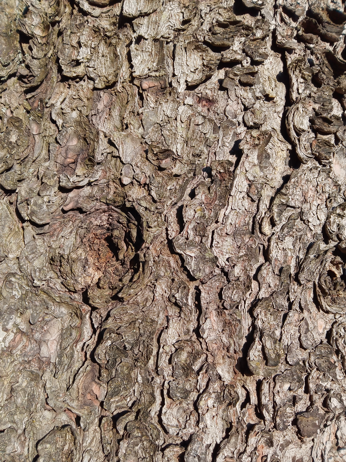 Description: Bark of middle-aged Swiss stone pine (pinus cembra) in NBG of Latvia. Trunk diameter ~25 cm.