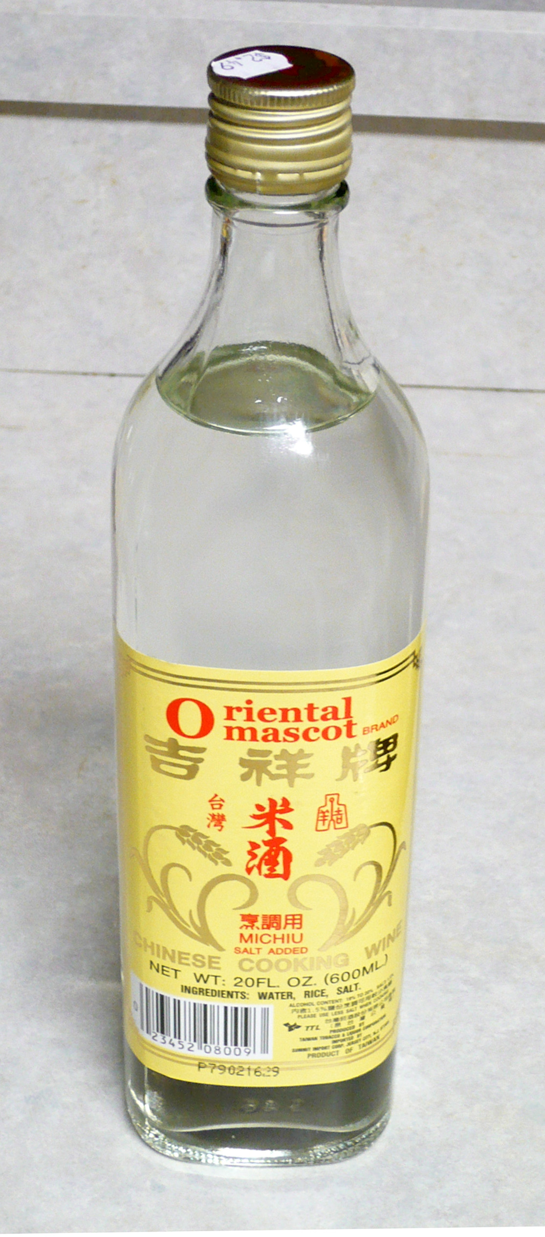Description: A bottle of Oriental Mascot brand cooking en:mijiu (fermented en:rice wine) from en:Taiwan. Mijiu purchased in a en:Cleveland, Ohio en:Asian supermarket. Ingredients: water, rice, salt. Alcohol content: 19% to 20%. Salt: 1.5%. Produced by Taiwan Tobacco & Liquor Corporation.