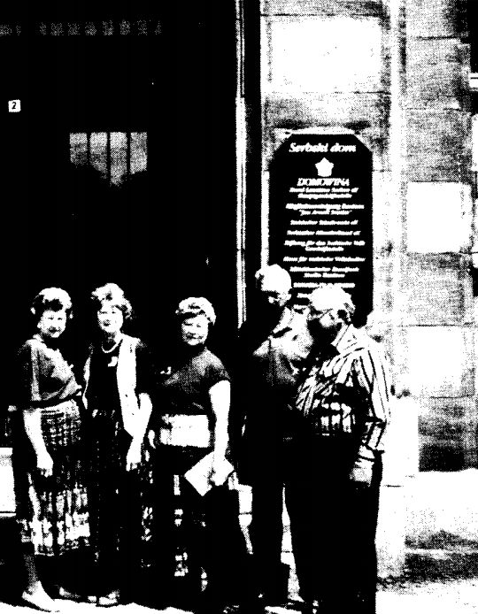 Description: Texas Wends at the Domowina in Bautzen, June 1994: Elinor Steglich, Georgie Boyce, Evelyn Kasper, Leroy Steglich, and Arnold Kasper